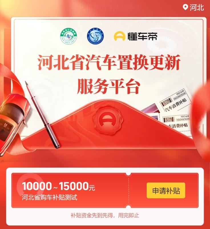 本次补贴申请,通过河北省汽车置换更新服务平台(以下称平台)填报,申请人打开“懂车帝”App进入申请页面进行操作。