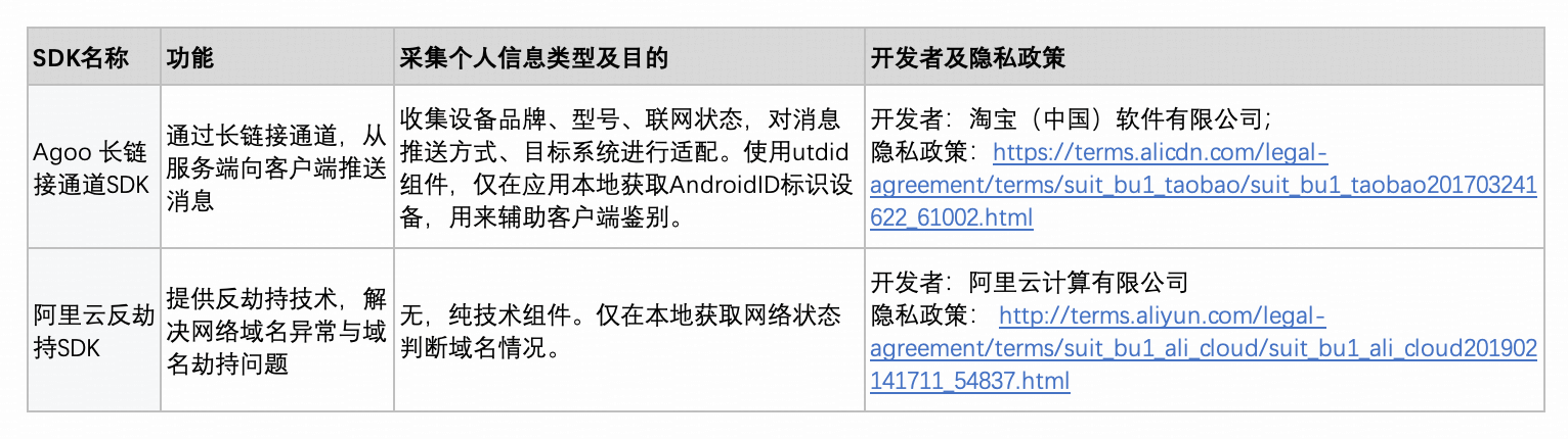 - 请注意,合作方的代码可能因为其版本升级、策略调整等原因导致数据处理类型存在一定变化,请以其公示的官方说明为准。